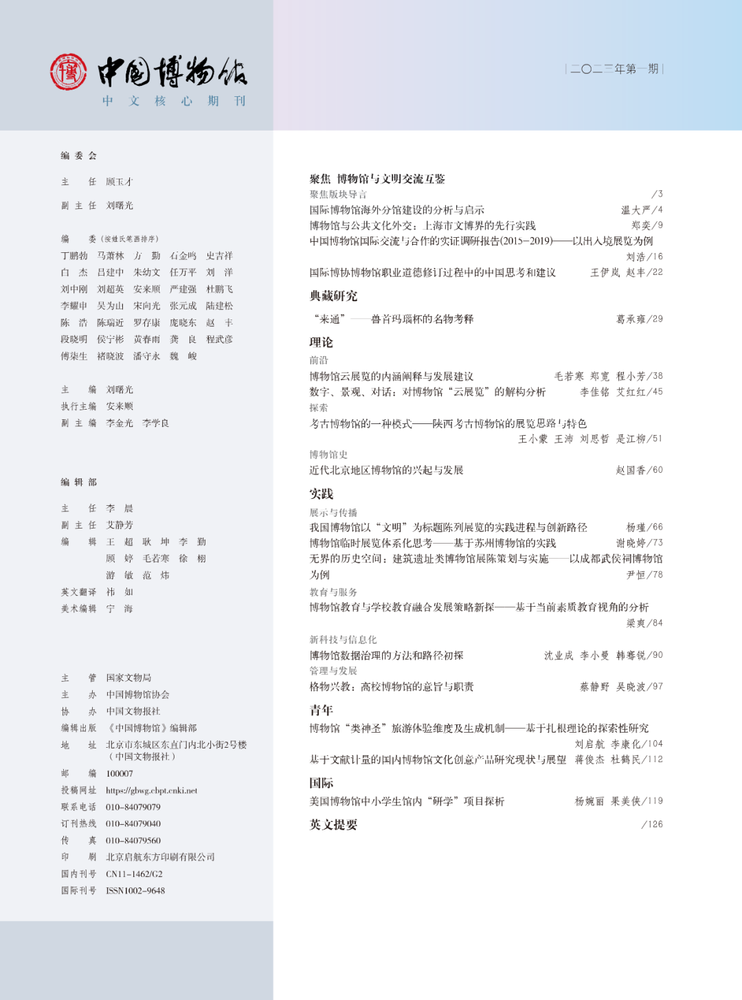 从国际经验看,博物馆建设海外分馆,创立分馆品牌进行国际化推广,在传播文化价值观、彰显文化软实力方面效果显著。分析这些成功案例启示我们,品牌传播应成为推动我国博物馆“走出去”的新增长点,扩大中华文化国际影响力的重要形式。应着重考虑价值、风格和品牌立馆,探索中国博物馆海外发展的特色路径。