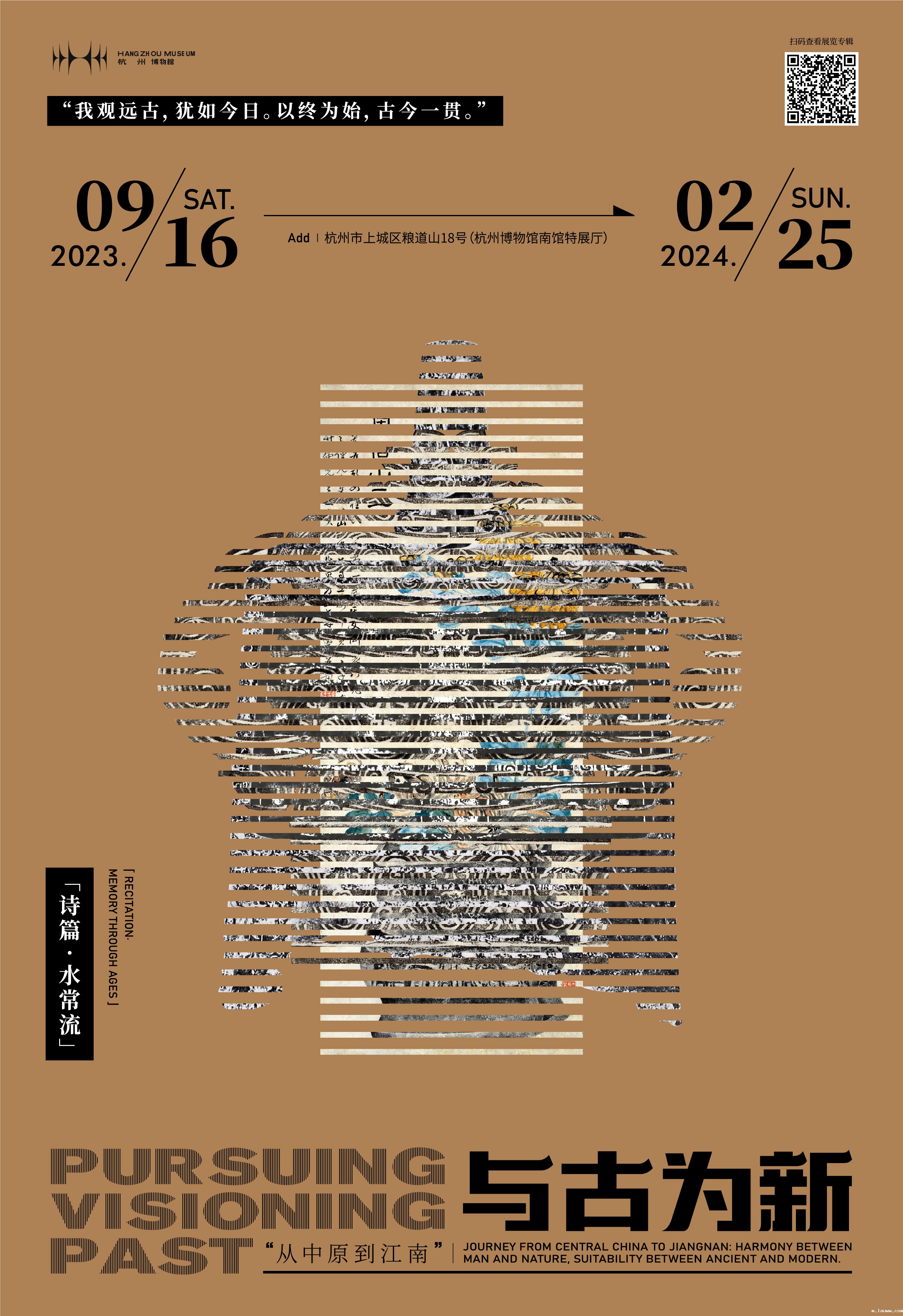 2023年9月23日至10月8日,杭州亚运会(第19届亚洲夏季运动会)将在杭州举办。杭州博物馆作为展现杭州历史变迁和文物珍藏的人文类综合性博物馆、杭州亚运人文体验点,同步为海内外观众献上一场文明的盛宴。展览由杭州市园林文物局主办,杭州博物馆(杭州博物院(筹))承办,于2023年9月16日开展,将延续到2024年2月25日。17家文博机构携手、280套/314件藏品,用文物实证中华文明的突出特性,向今日的世界与未来的中国,展示与传播中华传统优秀文化的历史意义与文化价值。