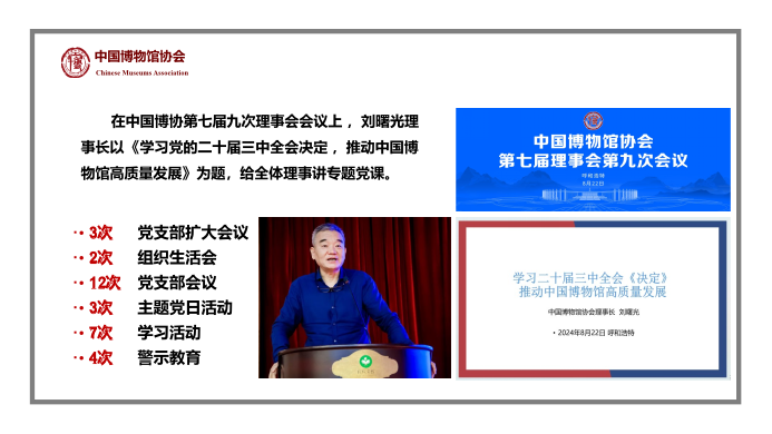 龙舞丰年辞旧岁,蛇迎盛世贺新春!回望甲辰,18luck新利官网ios在国家文物局的领导下,紧密团结广大会员深入学习宣传贯彻习近平文化思想,顺应我国博物馆事业高质量发展的要求,在不断提升党建水平、推动学术研究、促进行业发展、拓展对外交流等多方面取得了可喜的进步,集中表现在如下十件大事: