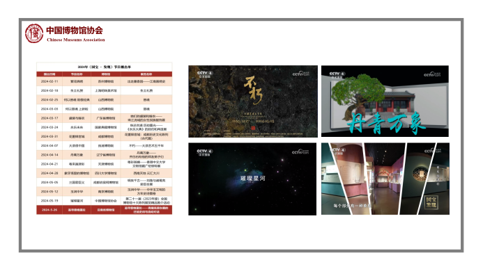 重新调整全国博物馆十大陈列展览精品推介办法和流程;联合中央广播电视总台华语环球节目中心《国宝·发现》栏目合作推出39集《探展》系列纪录片;推出《策展笔记》丛书第二辑13本。